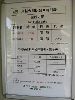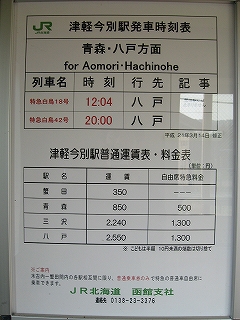 知内まで1230円、木古内まで1600円。木古内までは特急料金不要。