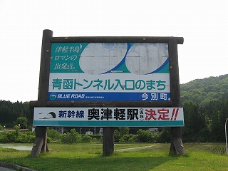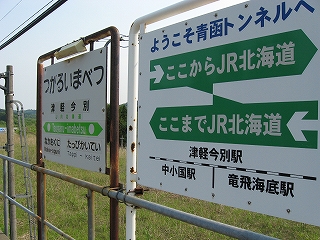 新手の名所案内板。青函トンネル入口までは7kmある。