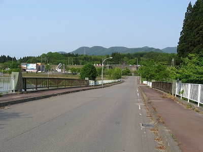 踏切を渡って。