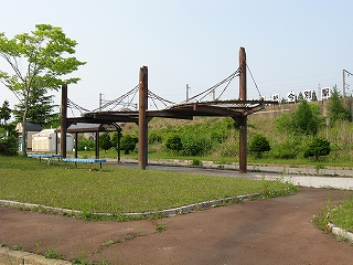 北海道新幹線奥津軽駅設置決定と出ていて、どちらでもいいけど何か既存の街はあったのかなと周辺の道路を歩いた。が、やはり青函トンネル入口のまちとしてひところ駅前に大規模な整備を施したきりで、あたりは小川や民家が点在するだけのところ、使いきれない駅前は雑草に侵され地面を裂いていた。「ブームが去った公共事業の終着地というのも、旅情があるな」 遊具や四阿もしつらえてある。いろんなところからの人が集い、ここから名所へのバスも多数出て、ここが地元で出張されているお父さんが特急を使って帰るのをおじい、おばあさんらが子供とともに遊びながら待つ、そんな想像のされていたのが思い浮かんだ。いまや雑草が地面を割っている。でも今度は新幹線なんだから、変わってしまいそうだ。いくら寝ていても立地ゆえ機会が湧いてくる、不思議な泉のような感じ。それは争おうとしない姿で、選ばれた者としての悠揚、そうでないなら無意識なもしくは高貴な無関心があるだけだった。「こんなところに造ってもらってもというのもあるかな。それにまたもや1日2本とかにされたら…いやそれはそれで名所になるか」 海底トンネルで結ぶという、当時における限りない夢を、未完成のままの形態と超法規性を匂わす構造という彫像でいまだに伝えつづけ、この荒野でその先の新幹線を仮借としてさらに未来をも夢想させるという、完遂のなさげな、見果てぬ青年の旅路を思わせる印象を、旅の途中に立ち寄った者に、深く抱かせるのが私の観た津軽今別だった。