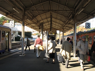 そんなことよりここは、伊賀の人にとって手っ取り早く都市圏に出られる継ぎ目となるところで、改札の内側から乗車券を申しつけ、構内を振り向きしては、台を人さし指でトントンと叩き「早く!」と急かしている人もいた。なるほど加茂周りでも、草津周りでも運賃が同じになるというような大都市近郊区間の決まりの中に入れられたのは理にかなっている。とくに京都へは草津線が便利なことが多い。みやこ路快速が少なく、加茂・木津の一駅間の乗り換えが面倒くさい。柘植からは朝は京都、大阪直通も出ているのだった。これは急行の名残だという。