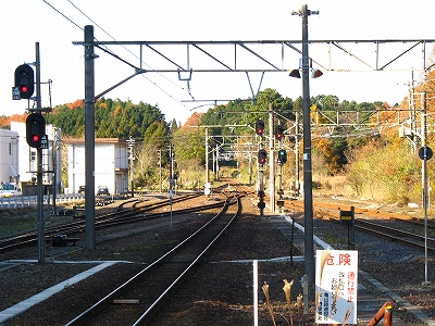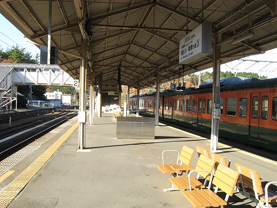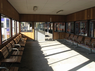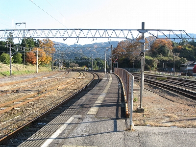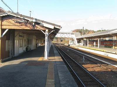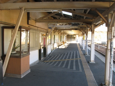 急行が走っていた数年前はまだどうにか賑やからしくもあったけど、それも廃止となり、やがてホームからは発車案内板、長椅子が撤去され、もう何もないといいたくなるが、往時の空気だけは今もしっかり残ってる。汽車時代は仕事が多くもっと活気があったに違いなくて、砂をかぶった側線やランプ小屋がやはり残置されていて思いを馳さしむ。けれど、何もかも廃れたわけでなく。乗務員の宿泊施設があり、朝な朝な、ひっそりと始発電車が運行されているのだった。それに少なくても乗り継ぐ人は今も絶えることがなく、夜が更けたって列車を待っている人はいて、私も伊勢地方によく赴いていたころは、ここで寒い中ほかの人と待っていたことがあった。