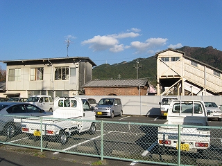 ランプ小屋が見える。手前は伊賀市営駐車場。
