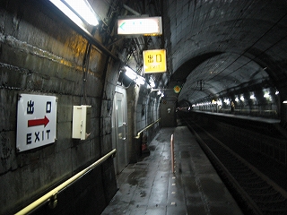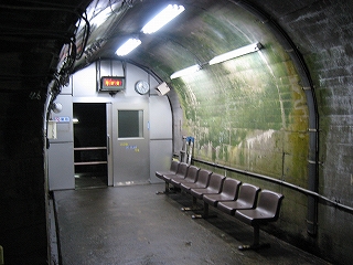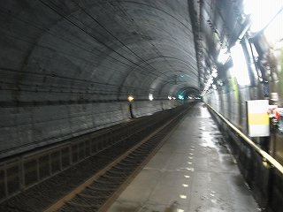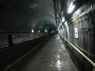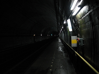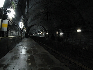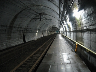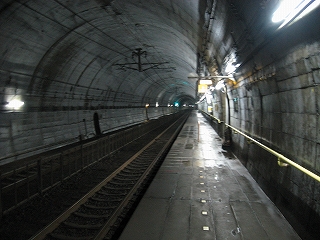 結局一人で残された。側壁に石板を差しこんだようなホームに立っているので、はっきりと駅にいるというところが、ただ鉄道トンネルの中にいるのとはまったく違っていた。こんなところに独りで居ても叱られないのである。ひたすら冷たい清水が浸潤し、坑内を黒く濡らしている。おぼつかなき蛍光灯がその水や、緑の薄苔を輝かせている。ずっと遠くのものも聞き取れそうな反響、ふと下方の闇に隠れたる退避坑たる龕。ぽちぽち、みちみちと水の滴る音や反響という音はあるのだが、それでいて稠密な静謐を感じさせていた。