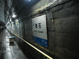 坑内に貼りつけられた白い明かりに照らされる濡れた駅名標を見て、本当にこんなところが一般に使うのが許されている駅なんだ、と思う。はじめ筒石駅がトンネルの駅だと聞いて、トンネル駅だからそういう名前を付けたのかと思ったほどだ。しかし筒石は海辺の集落の名であった。