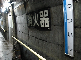 なんだJR様式の縦型駅名俵もある。消火器表示が赤色を使っていなくて特殊だった。
