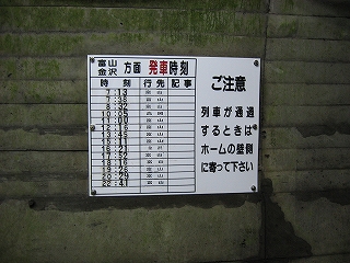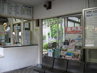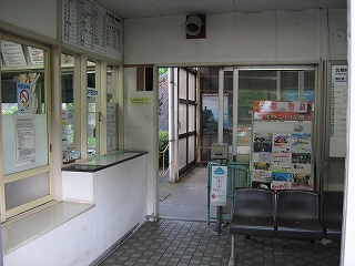 座っている真向かいに真っ平らな出札窓口が二つ、ある。ポスターなどが貼られて賑やかしになっているが、ごちゃごちゃした温かさというのも、古さというのも、なかった。しかしよく観察すると出札口は今はあまりないような木枠のはめ殺しで、あまり新しくもないようだった。その透明板の向こうにデスクや書架があり、二人の駅員がしゃべりながらなんだかんだと事務をしていた。一人は私がここに来て最初に会った人で、駅員なのに遊山客を嫌がらず、かといって情厚くもなく新客を空気のようにほどほどに自由にし、扱ってくれる、まずまず普通に人当たりのよさそうな人だった。もう一人はつるつるてんてんで、私に「列車が来たら壁によりなよ」とトンネル内で向こうのホームから親しく呼びかけた人だった。体型が良い人だった。この二方(ふたかた)が列車が来る前になるたびに階段を下り、停発車の安全確認をしているようだ。