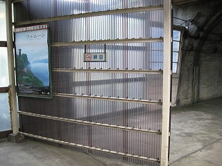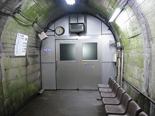 扉を引いて入るとまだトンネルの雰囲気のままに、時計や椅子などがあった。駅としてはぜんたいに殺風景なのだろうなと思われた。
