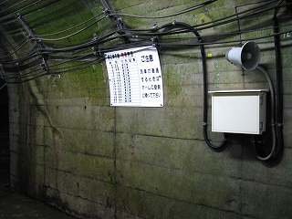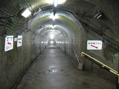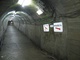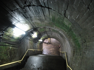 トンネル内に続く斜坑の様子。灯りがついていて驚いた。