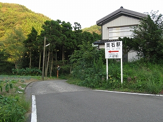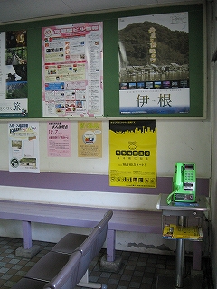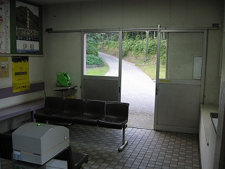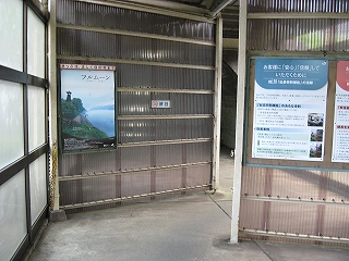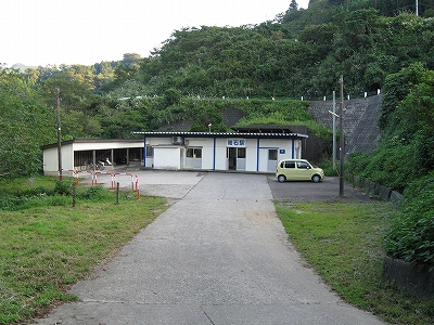 こんな駅だが改札はやはり簡易な建物の出入口でしかなかった。事務所に灯りがついていて、駅員が二人いる。待合も狭くてとくにどうということもなく、あっさりしていた。 あまり見るものがないなと思いつつ、外に出てもどうも山の中腹らしくて。ひどい下り坂だった。浜辺まで出ようかな、と思うも、もう今日一日さんざん駅から歩いては海を見たので、もういいわ、ここでは浜に出る予定もしていなかったし。よそう。しばしのためらいを捨てて、待合室に引っ込んだ。