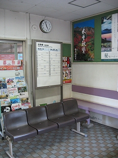 座ると目の前に窓口があるので自然とそこを見ていると、どうも一ばん最初の駅員さんが緑茶の準備をしている様子がちらっと見えた。どうしよう、と、うつむく。しかしそれからわずか十数秒ではあるが茶はいっこう来る気配がしないので、もしかして駅員用の茶を、自分のだ、と勘違いしたのではと思うに至り、慙愧に堪えず、駅舎を急いで外へ飛び出した。