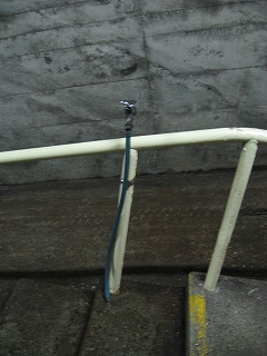 振り返って。長い。消火器と蛇口はこの駅でよく見かけるものだった。