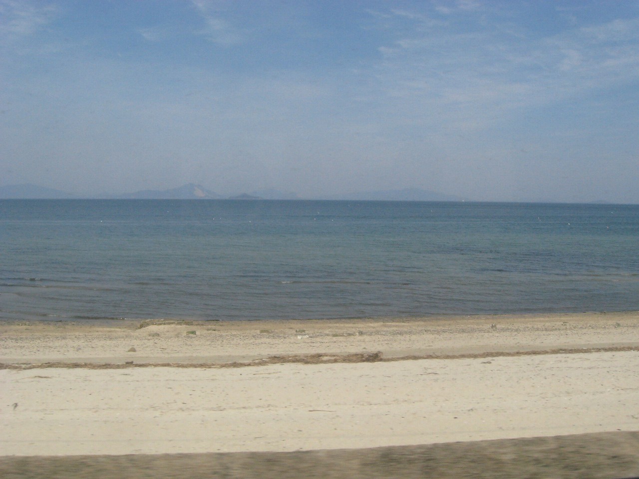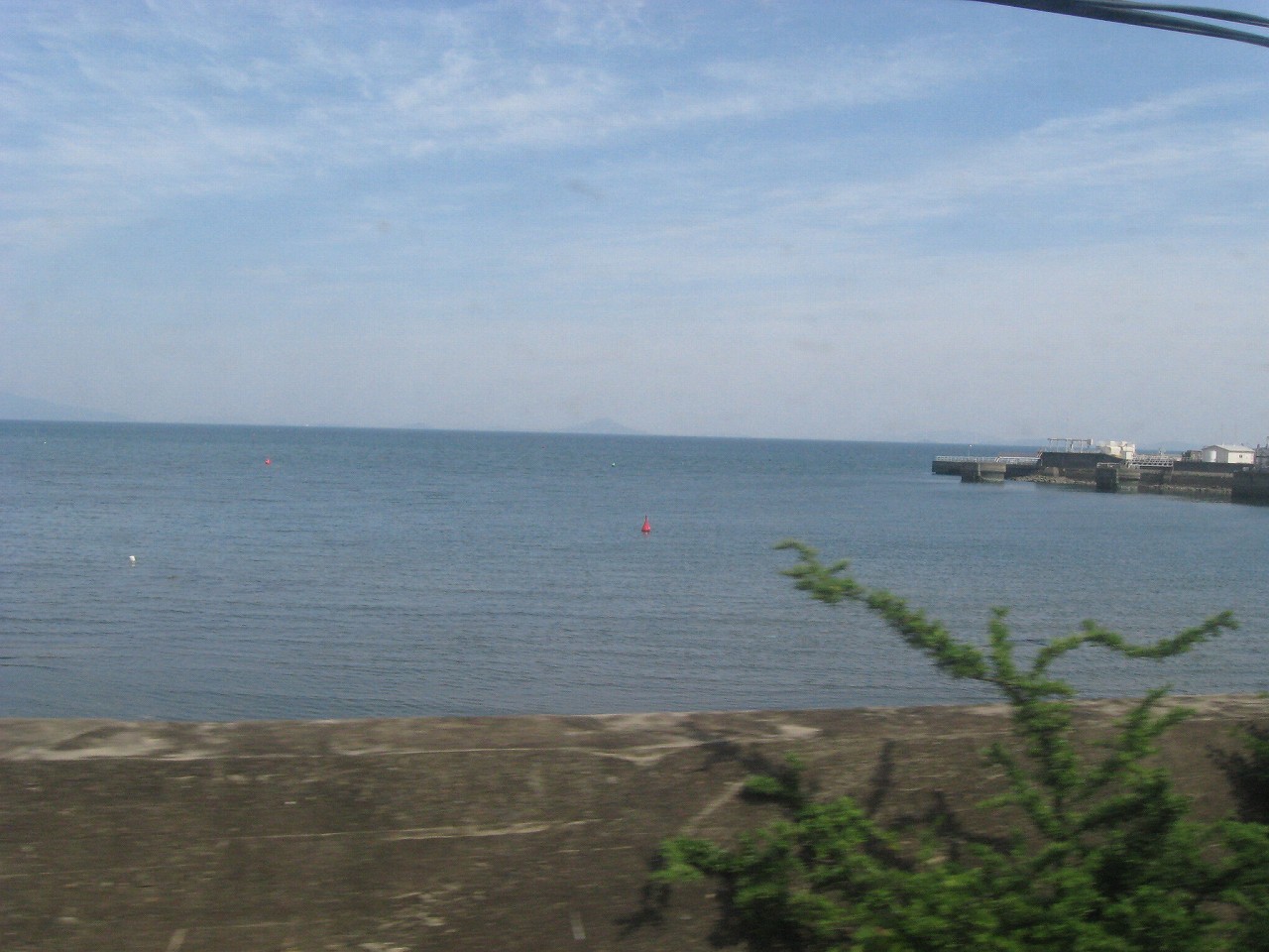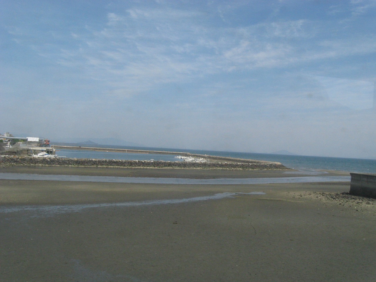 藤生から通津までは絶景区間。沢潟海岸といって、その名の通り干潟のような海岸美が連なる。