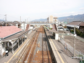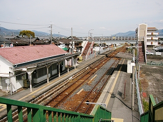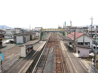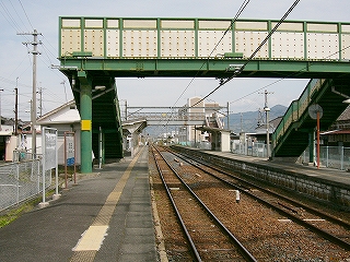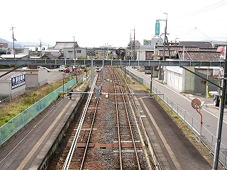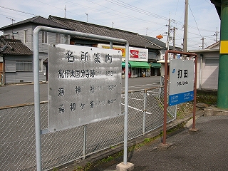 この駅の両隣は後造りで、ホームひとつきりの駅だ。 それにこの打田駅には貨物側線跡が残っていて、 貨物を扱ったらしい甍の倉庫も駅の裏に残っていた。 貨物側線の跡は地面をコンクリートで固められ、フェンスで囲われていた。 下げ札に、駐車場のご用命はTEL (個人名) 、というようなことが書いてあり、 払い下げられたかのようだったが、別の駐車場のことを指していたのかもしれない。