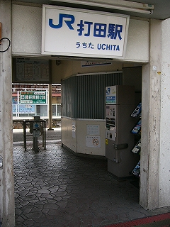 あたりをさして歩くこともなく、駅へと戻った。 打田駅、という青い文字型プレートが、白いプラスティックの板に貼ってあり、 それが駅の出入口を飾っていた。 これは和歌山県内のJRの駅によくある駅名表示だ。 出口の右側にはシャッターの下りた間口があって、 それを塞ぐように観光案内板が立っていた。この間口は観光案内所だったのだろうか。 この駅にもセブンティーンアイスの自動販売機があって、 学生のいる雰囲気を醸成していた。