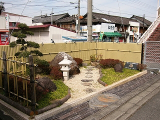 駅舎の粉河側には、造られたばかりの小さな庭園があった。 ライオンズクラブの寄贈だという。 小石を敷きつめて、石灯籠を配し、植栽をしてある。 そういえば和歌山線の駅舎のある駅に駅庭のあることは少ない。 むろんこれも駅庭ではないのだが…。 そのあたりから駅前が窺える、しかし、実にしんとしていながら、 ごくわずかに動きがあるといったようで、 人がいなさそうで確かにいる、という感じだった。 はっきりとしたものはないのか、としばし耳を澄ますが、 店の奥でちょっと物音がしたり、気がつくと老人が静かに歩いていたりで、 すっきりと捉えることができなかった。 暖湿気流の真っ白な空、空気は沈鬱につまり、映る影も薄く痩せている。