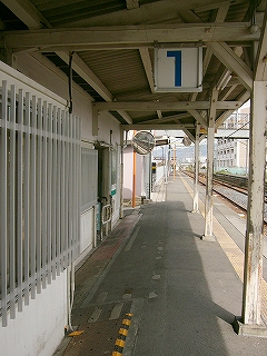 構内の跨線橋の階段を下りて1番線を歩いていると、 上屋の柱に個人的に電子工作であつらえたような、ワンマンを知らせる小さい案内板があった。 字の形にダイオードを並べてある。 しかし、ダイオードを覆う濃い色の半透明のカバーが破損されていたし、 今ではもう機能していないようだった。 でも、この駅のためにとくべつ手をかけた人の姿が浮かんでくる。 誰だ壊したのは、と言いたいところだが、 カバーがこのように割られていなければ、ワンマンという字は見えなかったようだ。