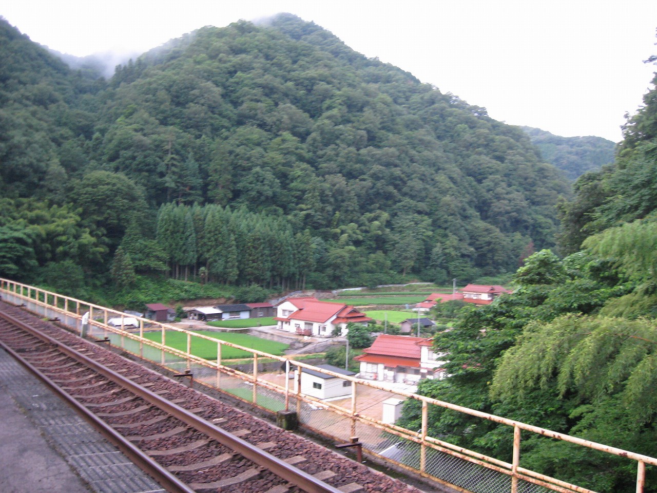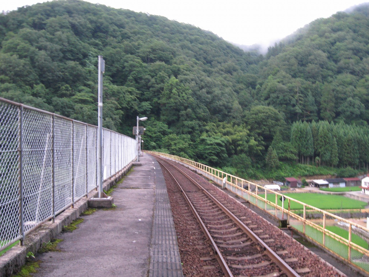 遠くから駅を眺めると、ほんと異様なところはあるが、天空の駅とまではいえないかなと。川霧が支配的になれば、そんな風に見えるのかもしれないけど。