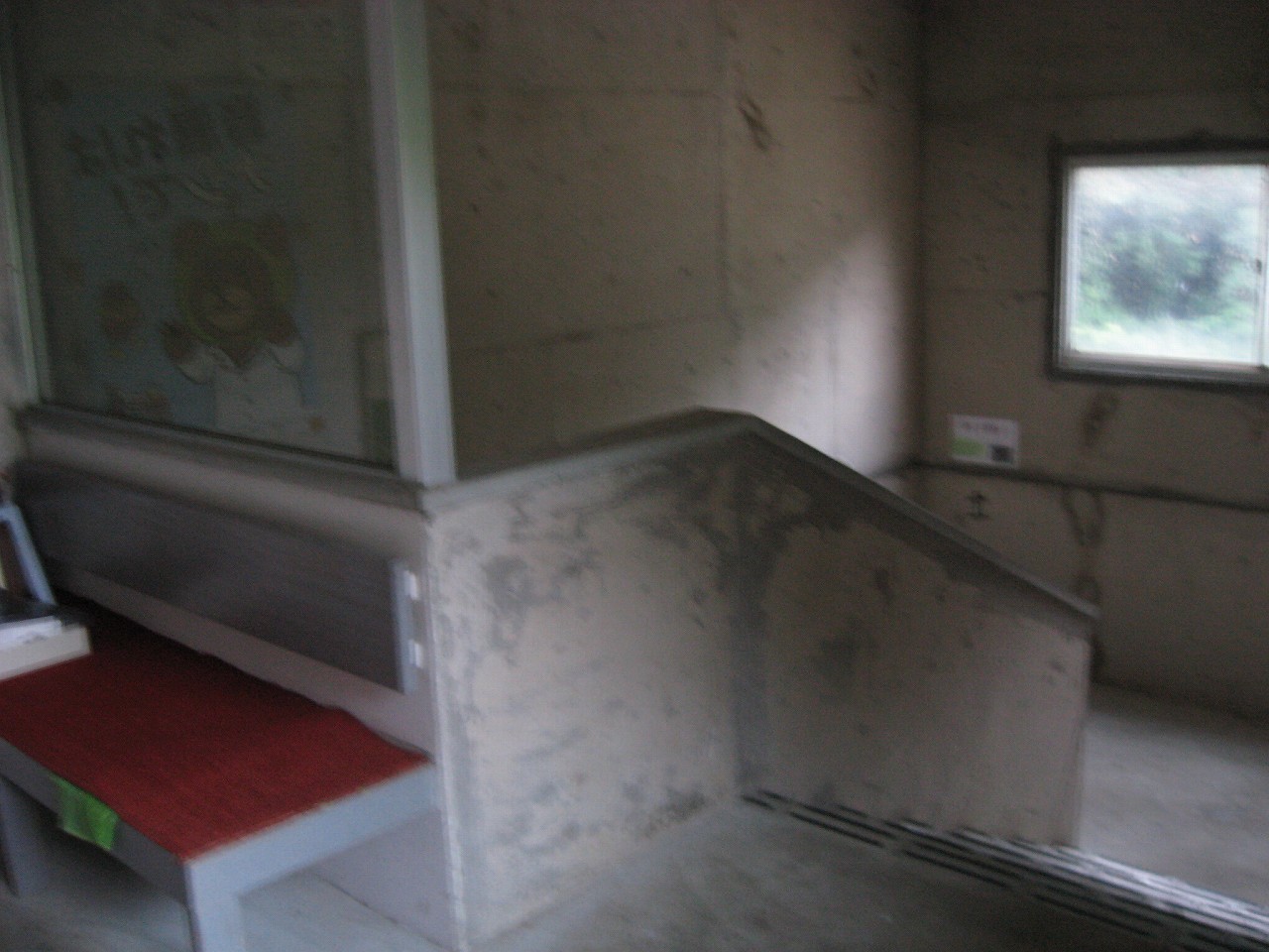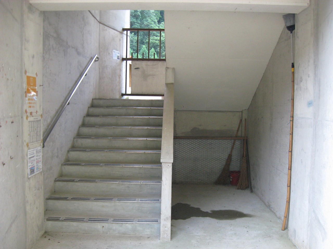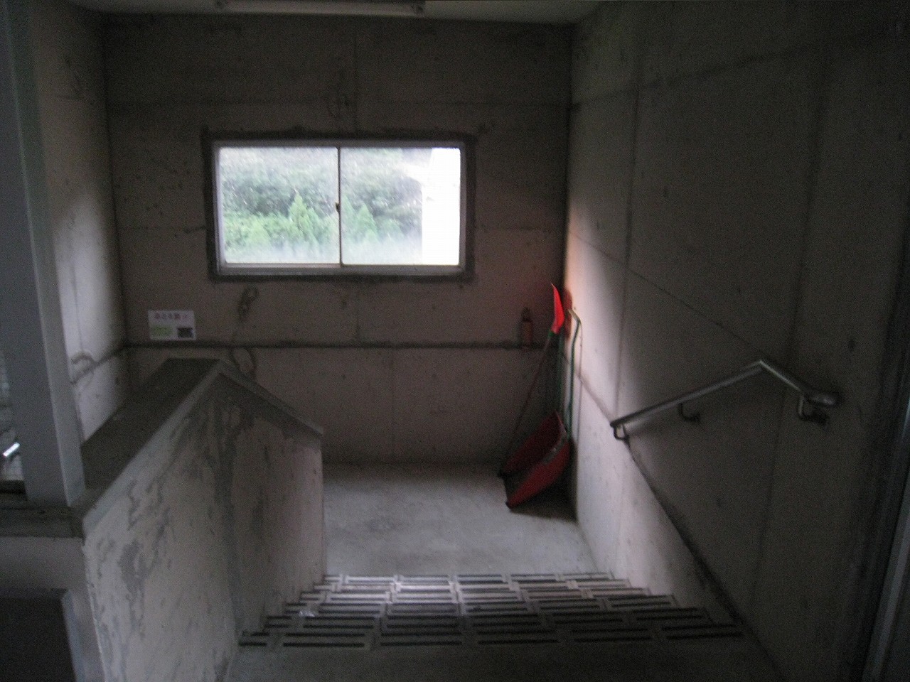 階段はまだ電気がついておらずかんなり暗いが、朝の清澄な空気でだいぶ恐ろしさは軽減されていた。コンクリートは鉄筋が膨らんで剥落しているところもある。塗装されていたところはベリベリと塗膜がはがれていて、つやつやなコンクリ面にはうまく喰いつかなかったことが窺われた。できたばかりのようにきれいなコンクリート面も、よくよく見ると密度が薄い感じがし、長町刷るかどうかは疑わしかった。