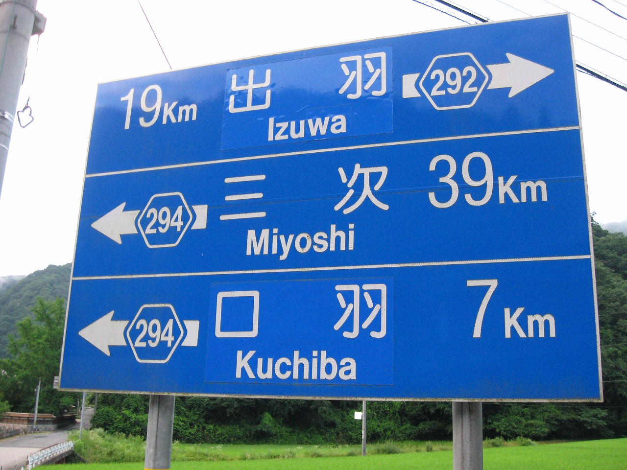宇都井駅前の道は島根県道292号となり、出羽方面が案内されています