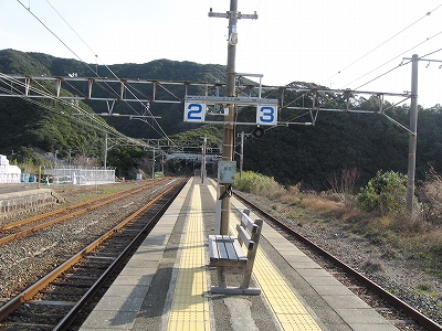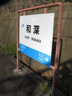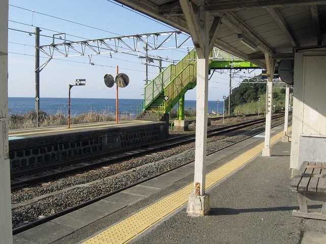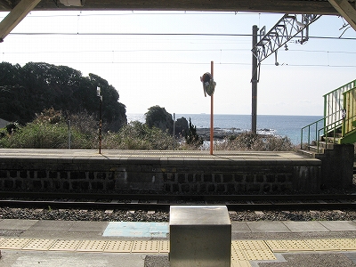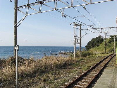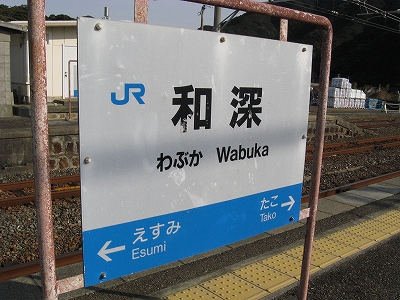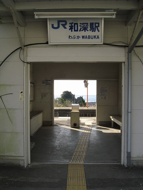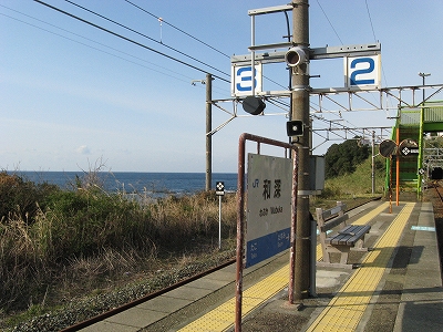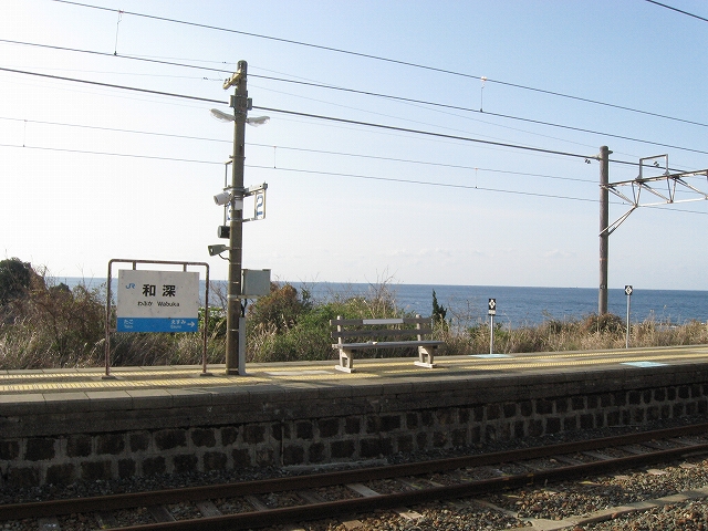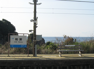 プラットホームに立ち、風に出会い、ここを海が好きだという誰かに紹介し、連れてきたいという思いに駆られる。必ず満足してもらえるだろうと。しかし実際そうしても、きっと何にもならず、つまらないことになり、私はこんなはずではなかったと狼狽するのだろう。私のいま胸に宿した感動は、もう決して共有できないのだ。自分自身とさえそうなのだから。魂揺さぶられる一心になる感動でないなら、共有集合の狭い、譲歩した理解なのだと。だからどう伝えたとしても、和深駅に来て面白いということはないのだろう。沖に立つ巌は、青くもこんなにも澪したたらせて淋しいものなのかと、陸の私は乾いた冷たい風に腿を撫でられながら思わされる。
