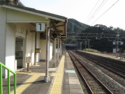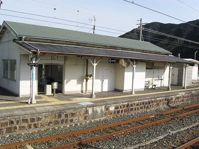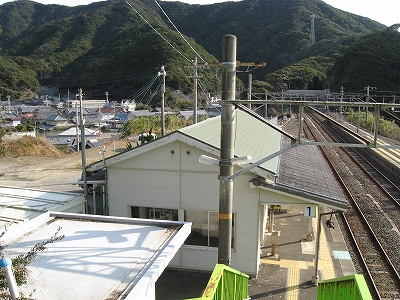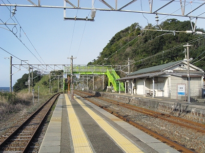 早朝訪れた紀伊日置を過ぎると、険しい山間を抜けたようで空気感が変わった。周参見だ。海も見える。特急も止まるということで、そんな明るい色合いが駅にも過分に表れていた。