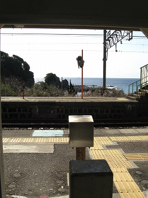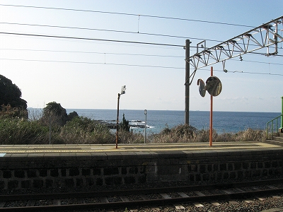 路肩からは駅とはるか下方に海が見下ろせるも、そこにはさっき見た南紀の海の輝きはなく、冬のやわい太陽とぼんやりした崖があるばかりで、鋭い寒気が鼻孔に刺さり、嗅覚を利かなくするばかりだった。まだ春ではないんだな。もちん望むところだ。