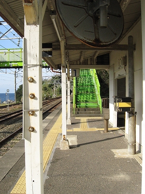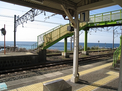 硬いプラットホームには外灯が立ち、海を見下ろしている。トンネルに挟まれた静かで、そして明るいところだった。骨の跨線橋すら、観望をかなえるためにあるかのようだった。陽は穏やかで、風も優しい。耳を澄ますとただその風音と、下方の海のどめきだけが聞こえる。本当に来たんだ、と思った。