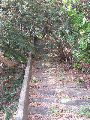 外に出ると、明るいのに冬の日陰の寒さに襲われた。ふと脇を見ると、日和見によさそうな石段があるが、不気味にくねる南方の灌木に覆われ破壊されている。知らない謎の道が、この界隈には眠っている。