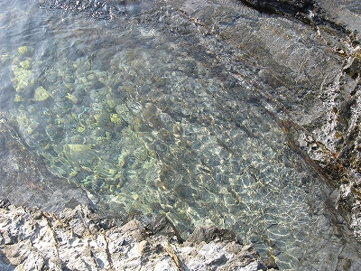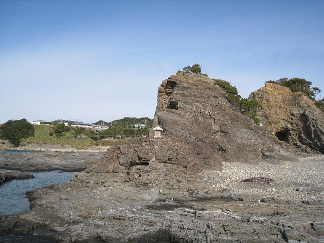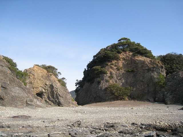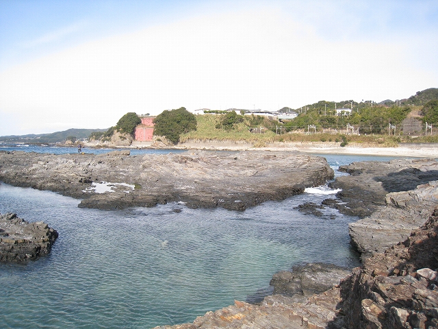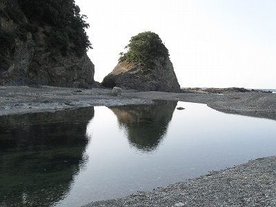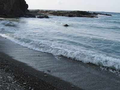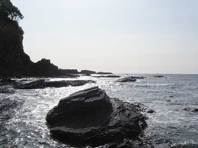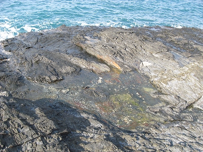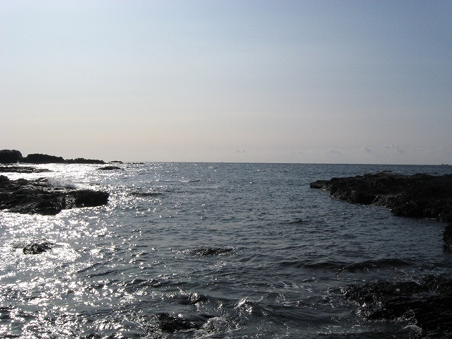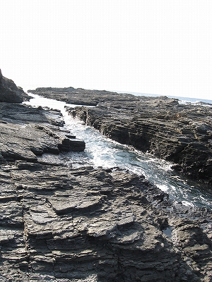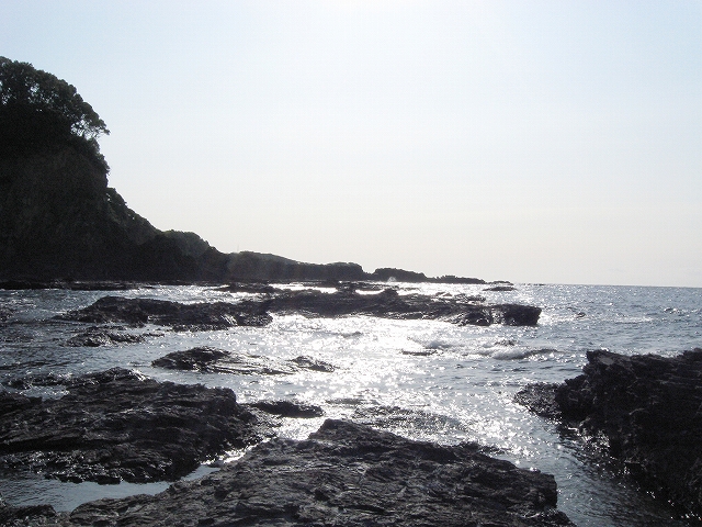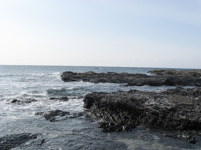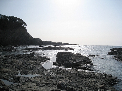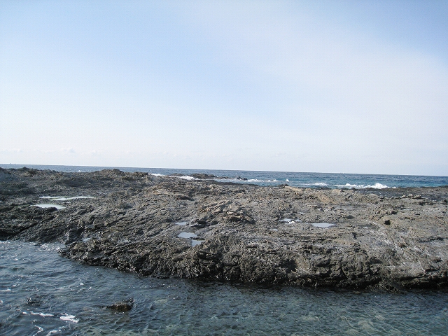 さびれた堤のある浜に出る。人受けしそうなきらきらするものではなかった。けれど、海食崖と磯の組み合わさった摩訶不思議な城は脇に控え、岩礁が平らに海の先まで突き出しているのを見るや、
