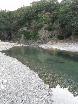 川が海まで行きつかず青緑に淀んでいる。背後には砂地ののっぽな海食崖がところどころに植物を備えおどろおどろしくそそり立って湿度を感じる。まるで海賊の砦のようだ。いかにも後退した昔の海食崖という趣で、山に還らんとしていた。足場の悪い礫浜を歩く。ちょっとしたことで足が礫に埋もれかなり痛い思いをする。足裏を湾曲させ大粒の礫を掴むのは、猿になった気分だ。靴もいかにもスニーカーという感じがする。だがどんな慣れても大礫は崩れ、ため息つきほんとうんざりした。