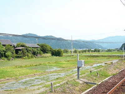 急に一人もいなくなった。有田というだけあって、山向こうまで水田が広がっている。見えない川に沿ってできた平野なので、横長の風景であった。鉄路もこの地形に沿っているというわけだ。山々を見やると、ところどころ禿げていた。待合室は暗く、元からある据え付け椅子のほか、水色の私設のぼろぼろの長椅子が置いてある。だれか一人の有力者がそれを置いたにもかかわらず、異議なくそのままにされていることから、
