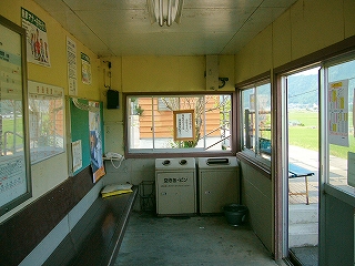 ホームを嵩上げしたため、待合室の床がかなり低くなった。
