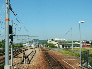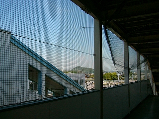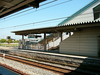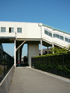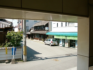 駅裏はさらに異様で、穏やかな木造家屋の一集落に、橋上通路からの階段が二つも突っ込んで、エレベーターが民家に沿って付けてある。ちなみに、ひと気はまったくない。こんなふうになるのに対し懸念は抱かれなかったのだろうか、いったいどこからお金は出たんだろう、などと首をかしいでしまった。が、こんな駅舎になった理由はわかりかけて、裏口設置と、バリアフリー化…。ところで橋上通路や階段から展望できた外の風景は、つねに張り巡らした網を通したもので、鳩の糞害という副産物はこうむったしまったようだ。