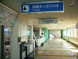 出改札口。券売機は意外にもパネル式ではなく無人駅においてあるような縦長タイプだった。