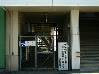 駅舎出入口。なんだか殺風景な。右手にエレベーターのりば。