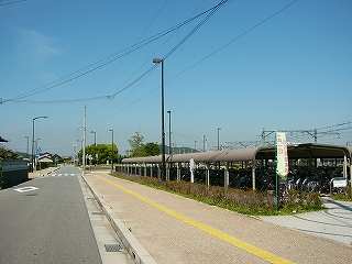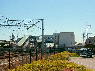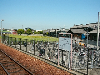 その駐輪所付近から見た駅舎。
