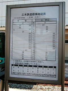 三木鉄道の時刻表。