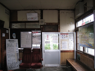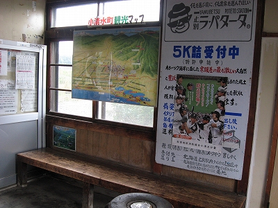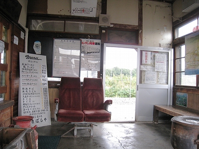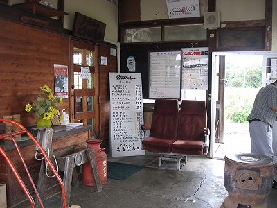 駅舎は鉄道史系で、駅務室をラーメン屋にしている。どうも繁盛しているようで、深いでっかいポリ容器を持った女性が出てきて、待合で待っていた人に、お客さんですか、どうぞ入れるんで、というと、あっそうなんですか? といって入っていった。私はてっきり汽車待ちの人たと思っていたが…。