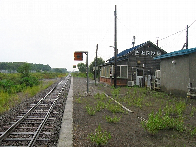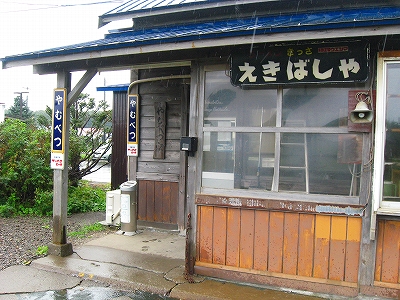 同じに降りたのはほかにもいて、みんないそいそと狭い木造舎に這入りこんだ。木が濡れてかすかに匂いがし、全体に重さを感じる。その中は何か様々な時代の想い出が詰まっているようで、混沌としていた。快速海峡が走っていたような年代や、もっと極端に古い"ぽっぽや"みたいな合理化前や、そして今に近い時代といったような…雑然とした思い出の物置だった。
