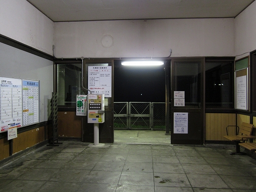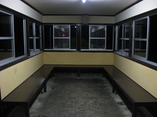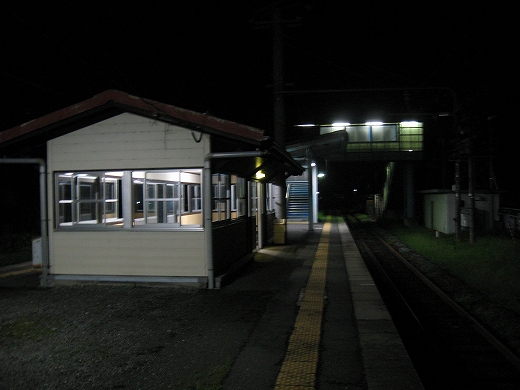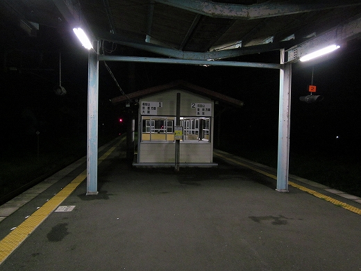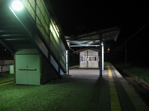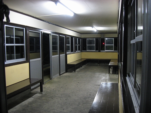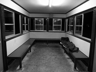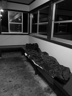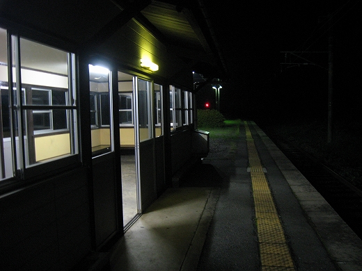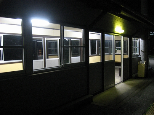 自販機もうなってるし駅舎前はまだよかったが、これからより暗いむこうのホームの待合室に行くのは気が重かった。いずれにせよ、消灯前に支度をせねば洒落にならん。しかし水場がない。一連のことは翌日の次の駅で済ますしかないな。そうそうに待合室に戻り、シートを敷いてシュラフを引っ張り出す。