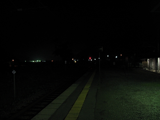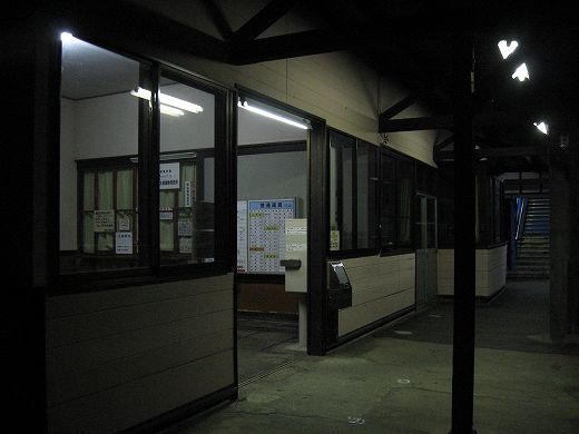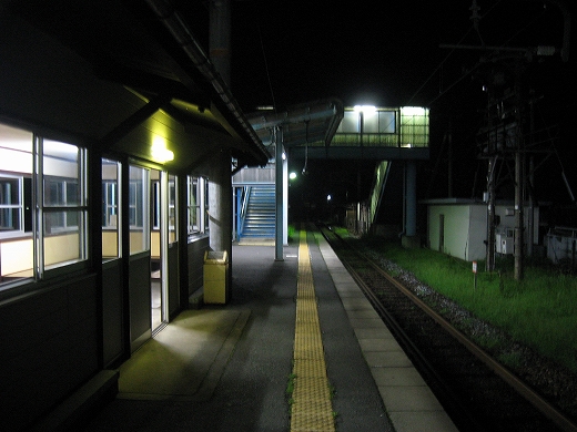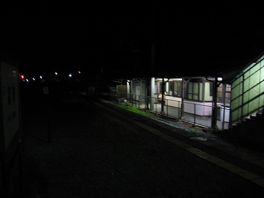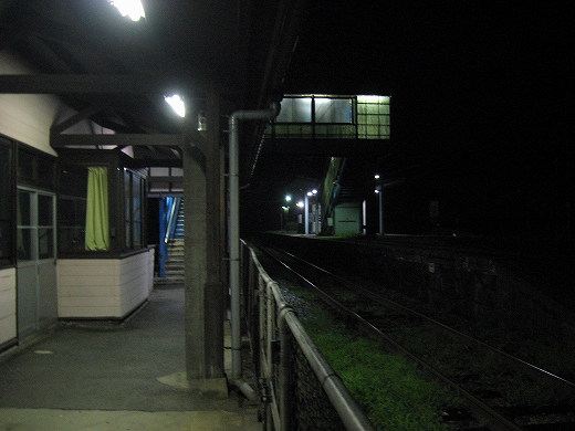 外は小街道が流れ去って、格子を玄関に出している昔からの民家がしずまっていた。もう家人はねむっているのだろう。かつてはその主人もこの駅から自分の人生をはじめたこともあったろうか? 今は駅とともにひっそりとねむっている。