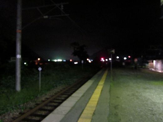 ぼんやり明かりのともる改札口のむこうからは蛙の大合唱が響いてくる。ただ身一つ、ただ我のみがここにあり。汽車はすべて去り、営業を無言のうちに終了した無人駅に。