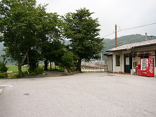 駅舎を出ると、左手には少し広いアスファルトの敷地、 正面には融雪装置のついた道が延び、 右手には狭い敷地に大木が何本か植わっていた。