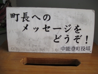 能登部にもあった提言箱。町長との距離が近そうだと思わせる。
