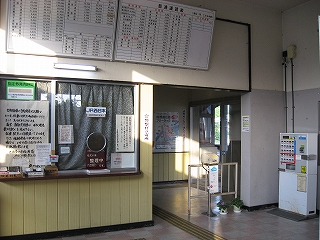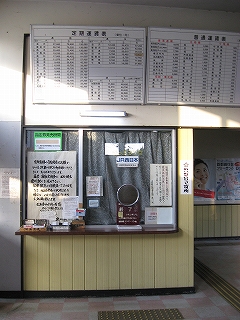 出札口。手書きの貼り出しの多い駅だった。こういうのが知らぬ間に温かい雰囲気を作っているのかもしれなかったが、このときはきっぱりそうだとは言えず、どちらかというと構造だった。