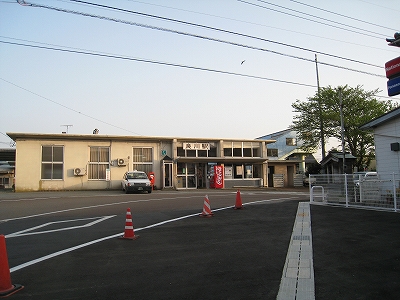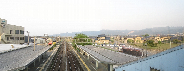 駅を出ても、たまに白のワゴン車が配送のためか走り抜けたり、待機しているタクシーのエンジンが蠢いているだけだった。駅が中くらいで近代的だから街を期待するけど、能登部と同じく、本来はいかにも小さな木造駅が発祥だと思わせるようなところで、旅人を誤解させてしまう駅である。