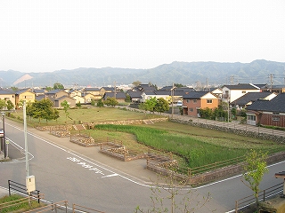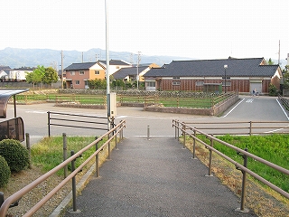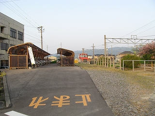 道路から見た駅。手前の敷地はカーブ緩和の区画整理?