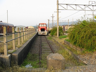 貨物側線。今は保線車両が留置されている。