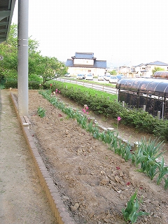 裏に面したホームに行くと、良川駅花壇というのがあった。しかし、どのチューリップも傘のようなもので花がなぎ払われていて、土の上に 花や葉が散らばっている。ちょうど関東のS県で街のチューリップが軒並みなぎ払われ、当局が器物損壊で捜査しているとニュースになっていたので、これもそうかと考えたのだが、球根を守るため、地元の人が早くに切ったのかもしれない、そうだ、と にわかに期待しはじめ、不穏な考えを遠ざけつつあった。むろんその可能性は低そうだった。というのも、ここはあくまで鑑賞の場だし、仮にそうでなくても、花壇くらいなら切った花は回収しそうだからだった。